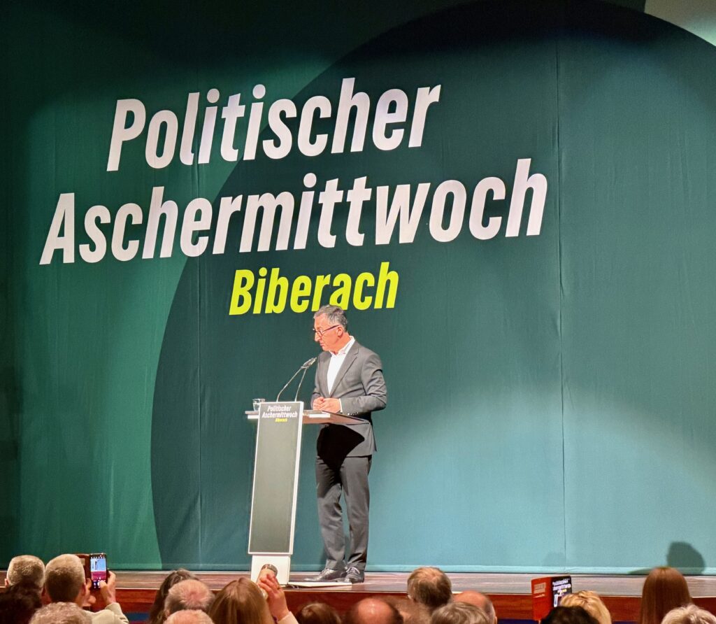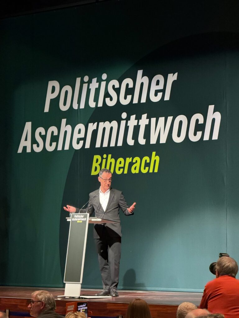 Mitglieder des KV Zollernalb besuchten am 18. Februar 2026 den Politischen Aschermittwoch in Biberach an der Riß. Die traditionsreiche Veranstaltung, organisiert vom Kreisverband von BÜNDNIS 90/DIE GRÜNEN, stand im Zeichen des baden-württembergischen Landtagswahlkampfs und vereinte hochrangige Rednerinnen und Redner aus Bundes- und Landespolitik.