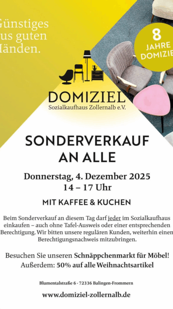 Sonderverkauf im Domizil Sozialkaufhaus Zollernalb e. V.